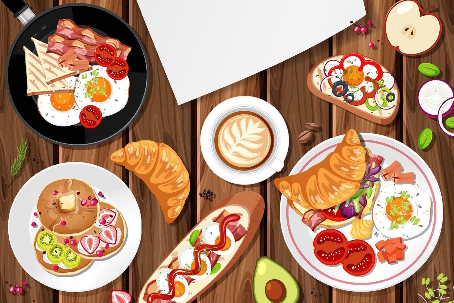 Top view of breakfast set on the table vector