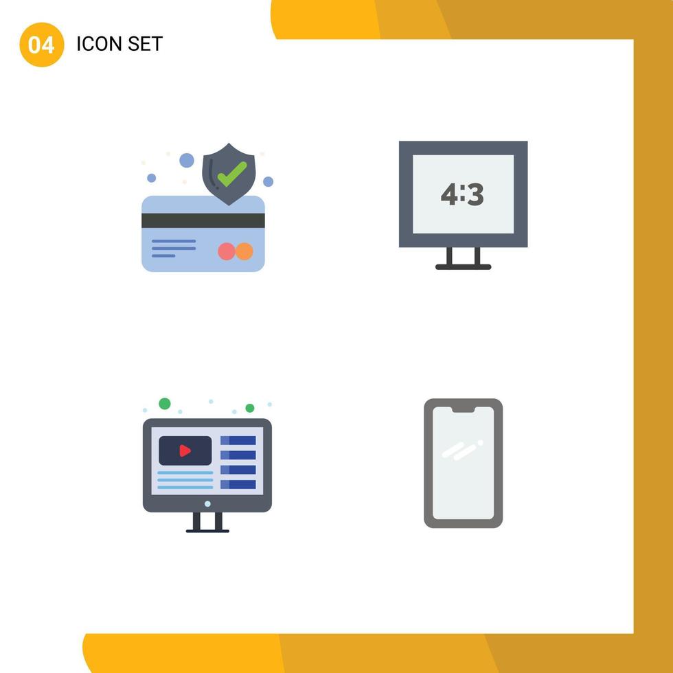 Editable Vector Line Pack of 4 Simple Flat Icons of atm card live aspect ratio design smart phone Editable Vector Design Elements Free Vector