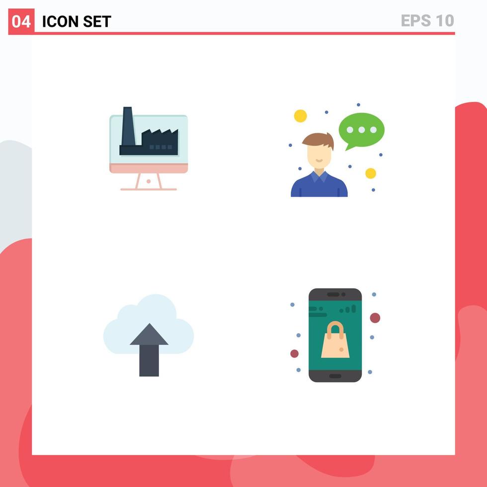 4 Flat Icon concept for Websites Mobile and Apps computer upload factory entrepreneur cloud Editable Vector Design Elements