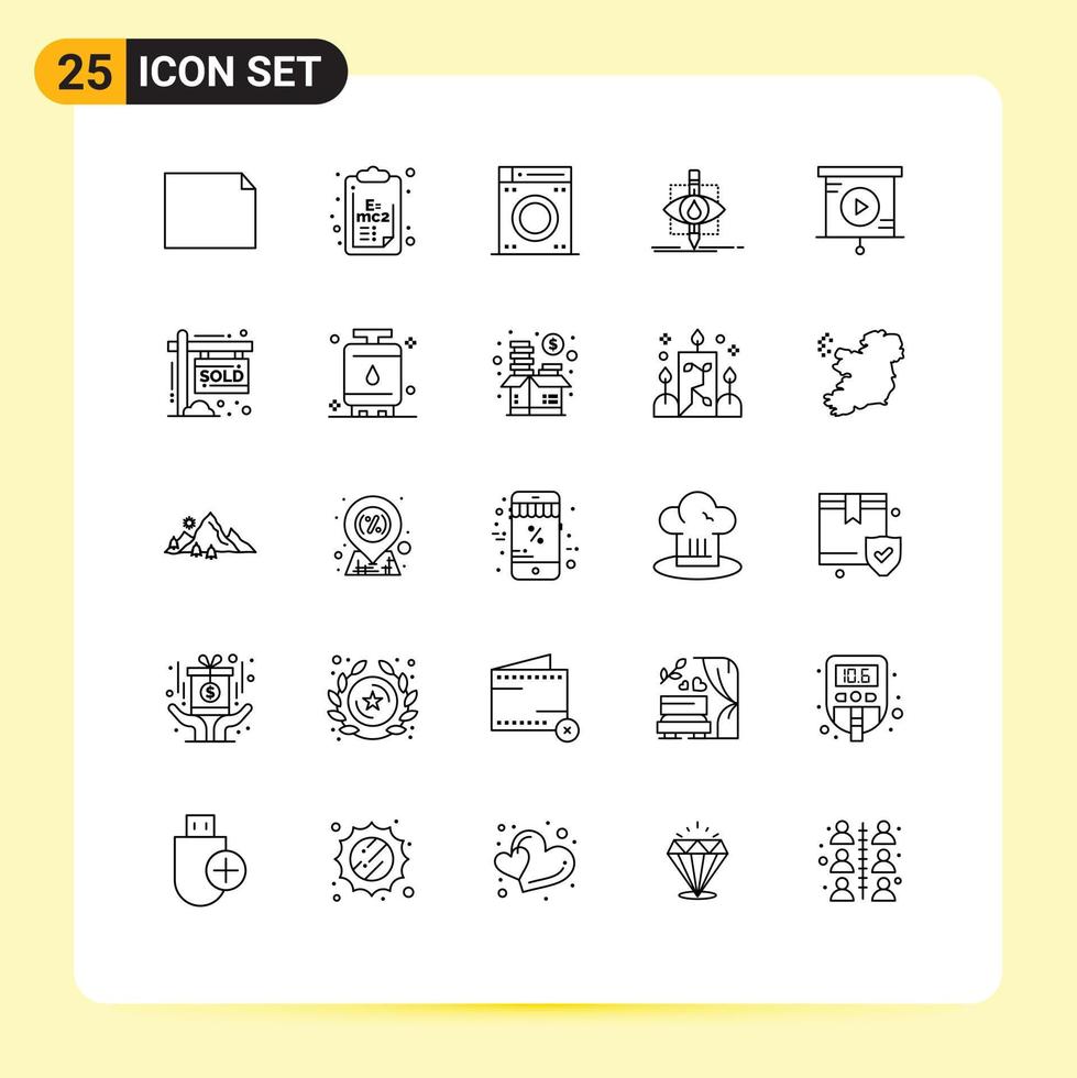 Group of 25 Modern Lines Set for presentation analytics machine science pollution Editable Vector Design Elements Free Vector and Free SVG