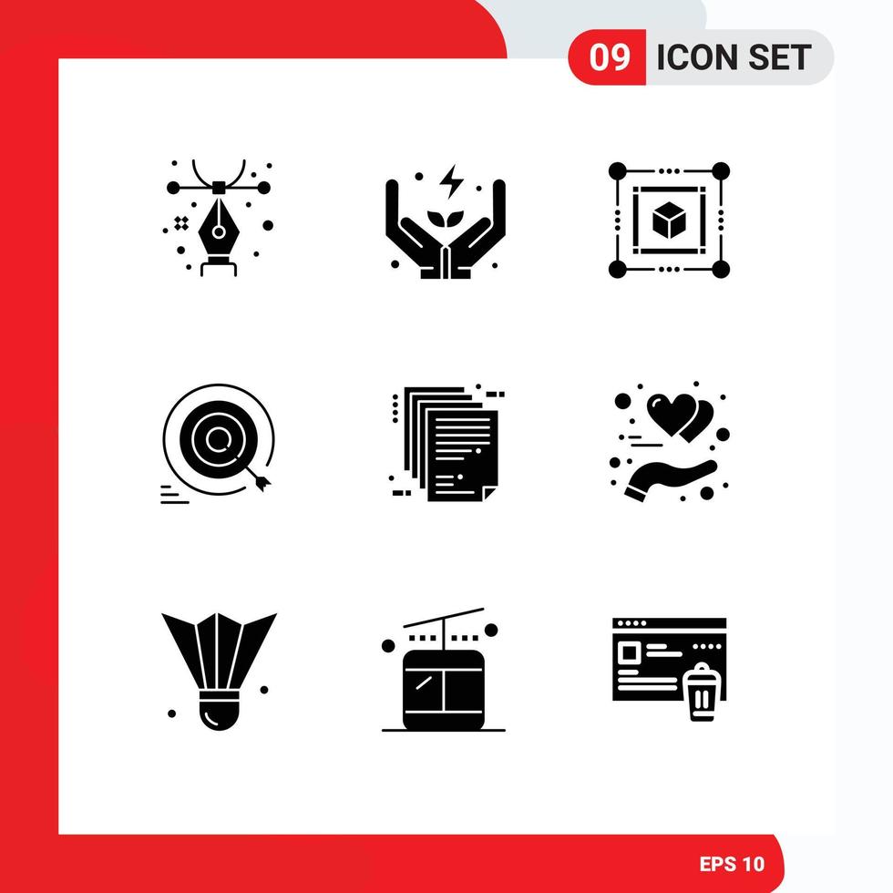 9 User Interface Solid Glyph Pack of modern Signs and Symbols of enterprise architecture deliverable cube goals target Editable Vector Design Elements