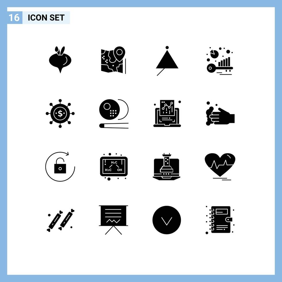 Mobile Interface Solid Glyph Set of 16 Pictograms of business keyword audio benchmarking triangle Editable Vector Design Elements