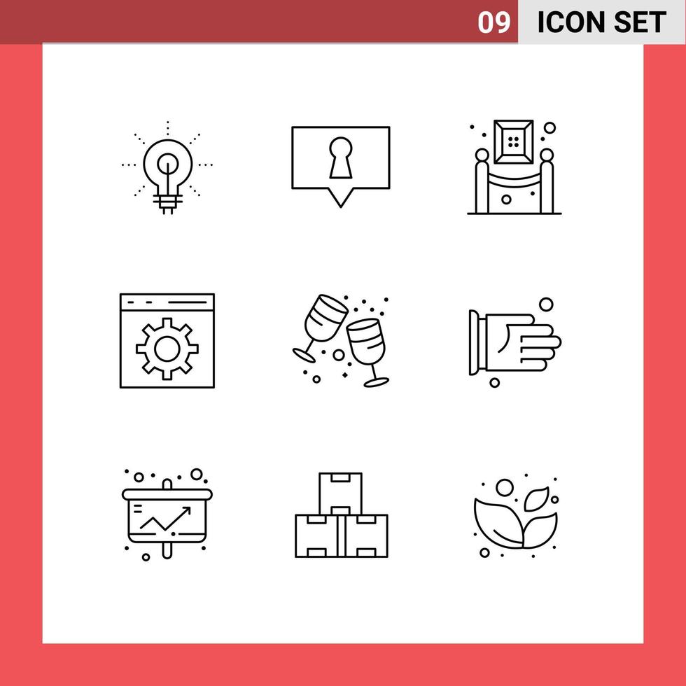 Group of 9 Outlines Signs and Symbols for drink programming art development coding Editable Vector Design Elements