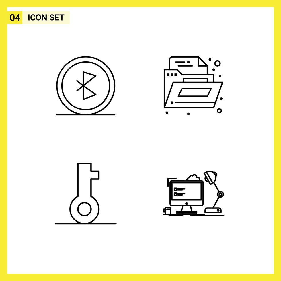 Set of 4 Modern UI Icons Symbols Signs for bluetooth lock network folder security Editable Vector Design Elements
