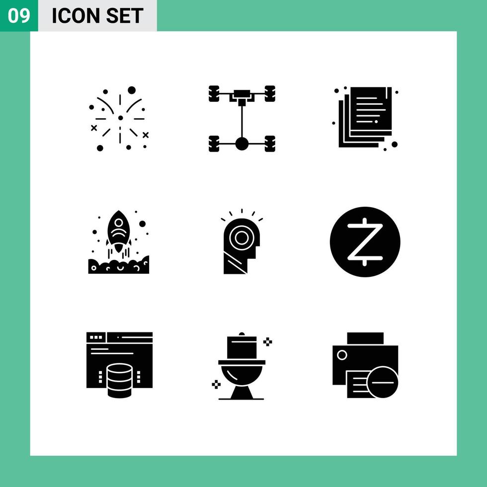 9 Universal Solid Glyphs Set for Web and Mobile Applications hat light documents idea start Editable Vector Design Elements