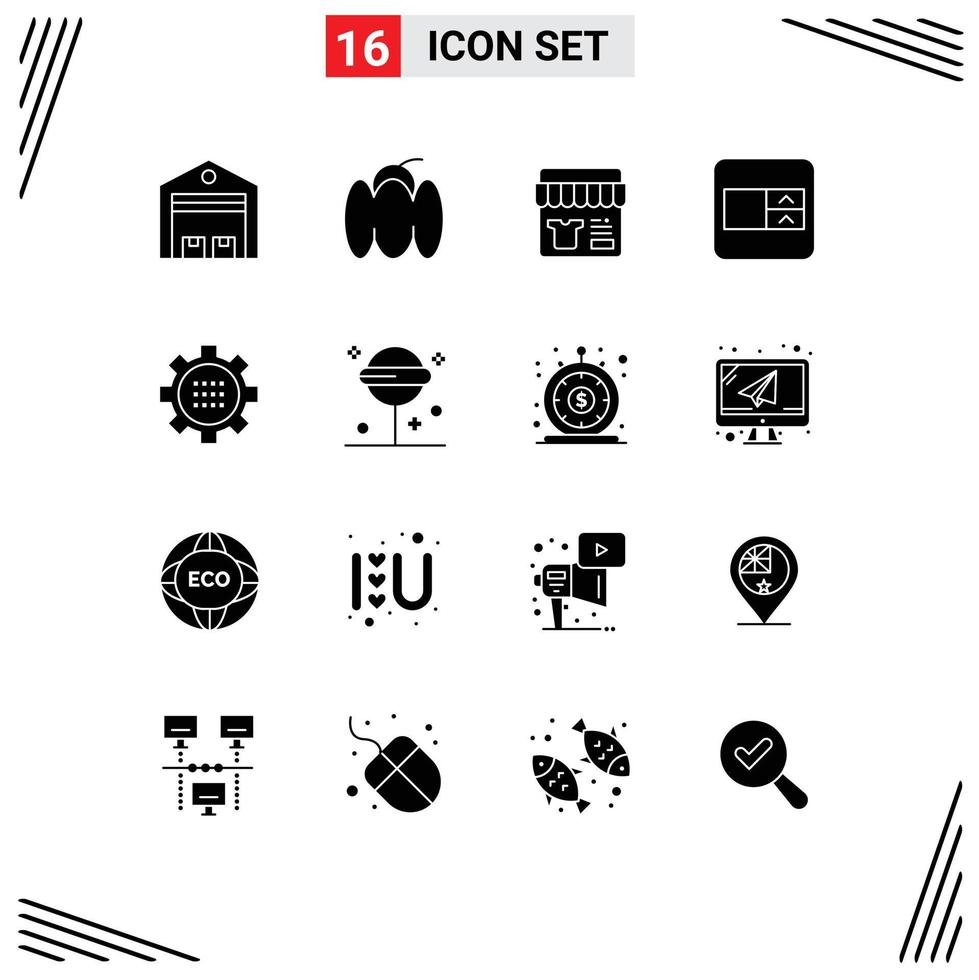 Mobile Interface Solid Glyph Set of 16 Pictograms of configuration wireframe vegetables select box store Editable Vector Design Elements Free Vector