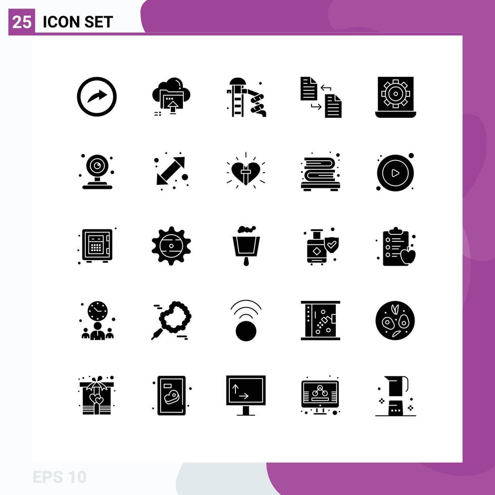 Editable Vector Line Pack of 25 Simple Solid Glyphs of computer page park slider file archive Editable Vector Design Elements