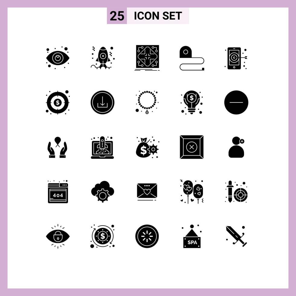 Group of 25 Modern Solid Glyphs Set for digital scale data measuring grid Editable Vector Design Elements Free Vector