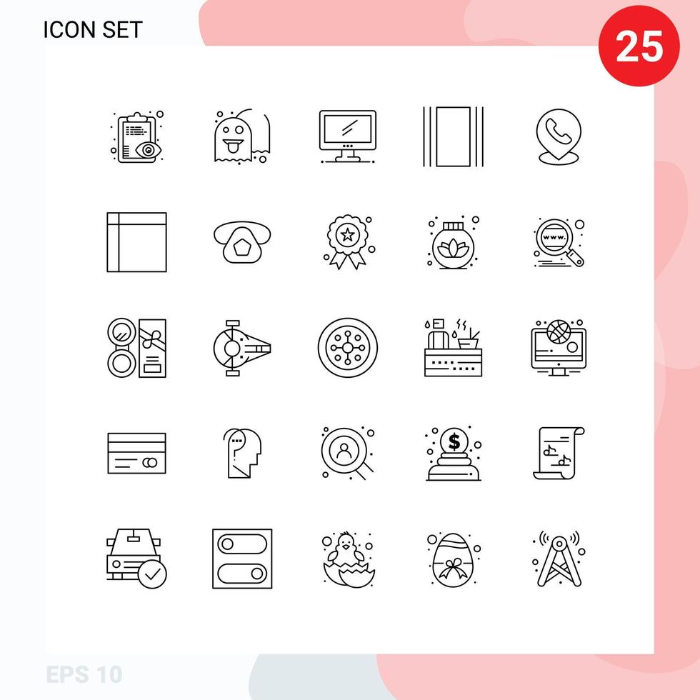 25 Universal Lines Set for Web and Mobile Applications telephone horizontal computer flow pc Editable Vector Design Elements