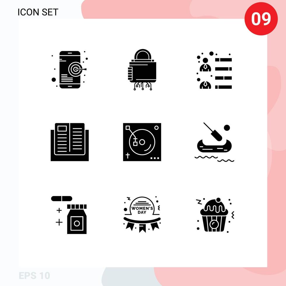 Editable Vector Line Pack of 9 Simple Solid Glyphs of school knowledge secure education team skills Editable Vector Design Elements