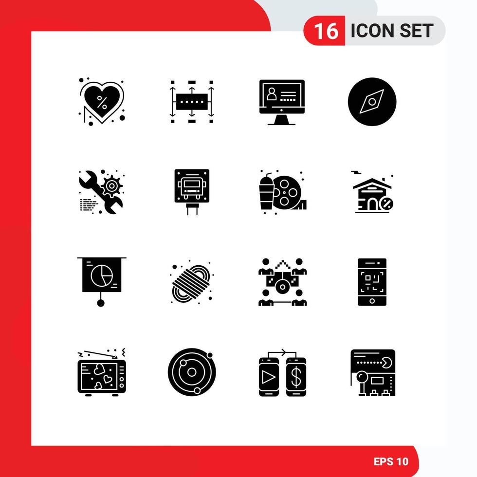 Set of 16 Commercial Solid Glyphs pack for setting navigation modern map security Editable Vector Design Elements Free Vector