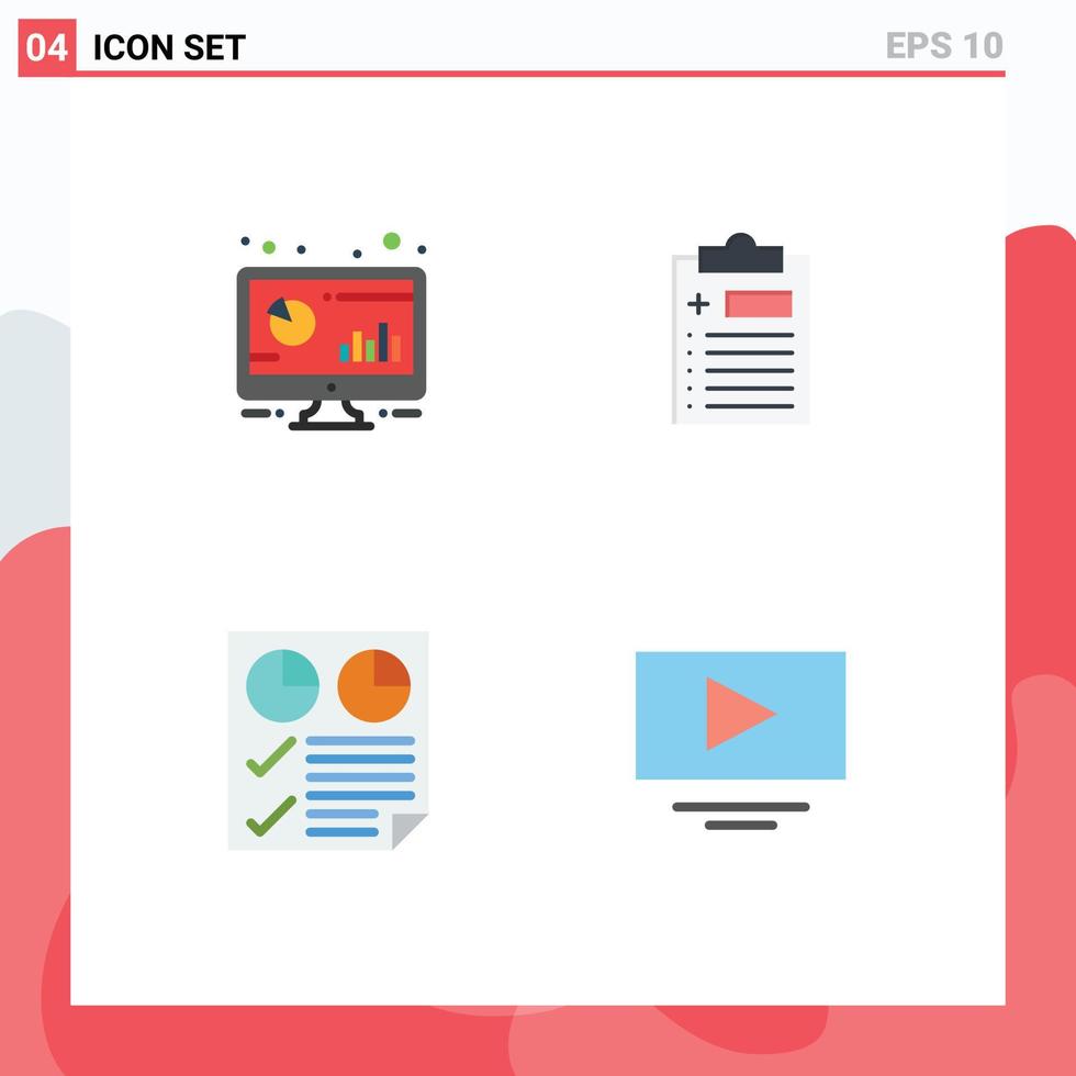 4 Flat Icon concept for Websites Mobile and Apps analytic data monitor clipboard page Editable Vector Design Elements