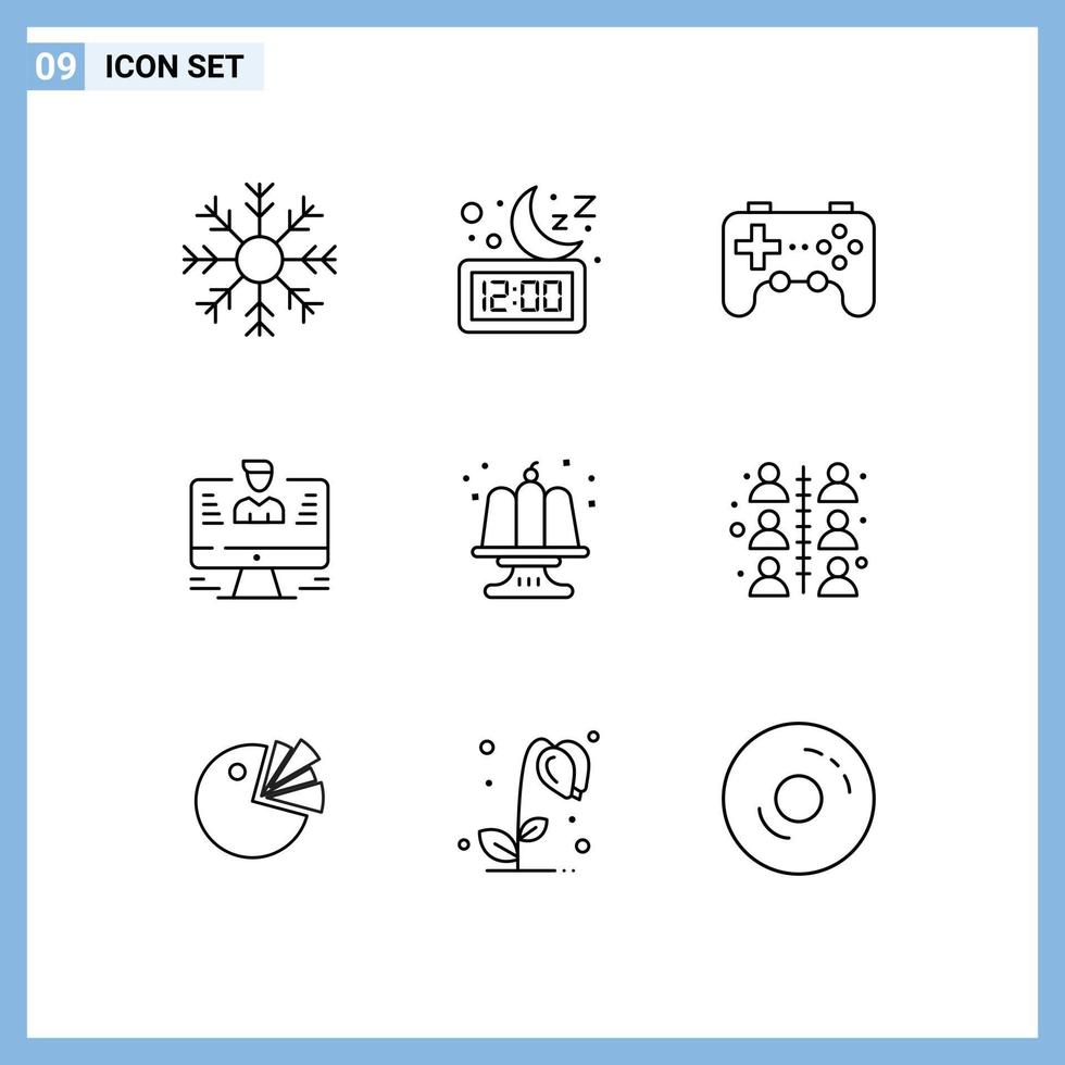 Editable Vector Line Pack of 9 Simple Outlines of report computer sleep user game Editable Vector Design Elements Free Vector