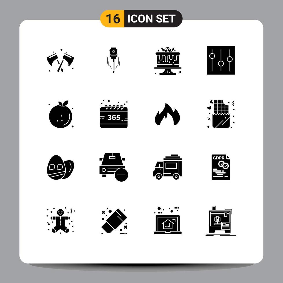 Mobile Interface Solid Glyph Set of 16 Pictograms of citrus setting cake interface basic Editable Vector Design Elements Free Vector and Free SVG