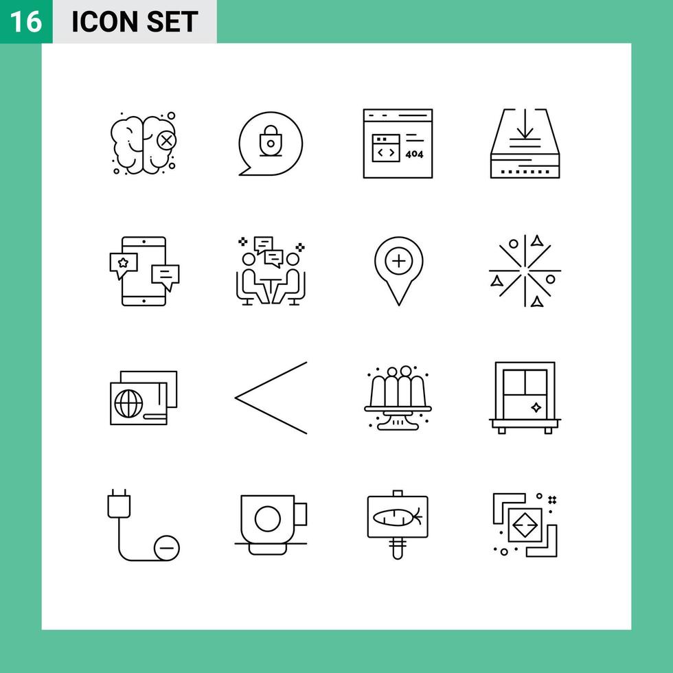 User Interface Pack of 16 Basic Outlines of media chat coding tray email Editable Vector Design Elements Free Vector