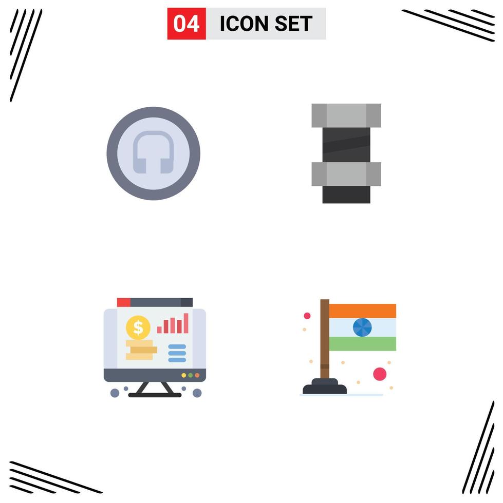Modern Set of 4 Flat Icons and symbols such as earphone web ui engineering country Editable Vector Design Elements Free Vector