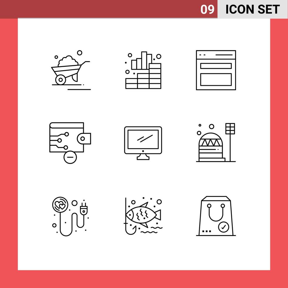 9 Thematic Vector Outlines and Editable Symbols of monitor wallet graph remove user Editable Vector Design Elements Free Vector