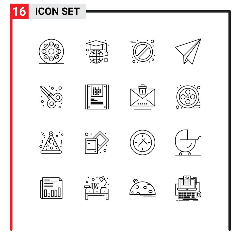 Pictogram Set of 16 Simple Outlines of graphy scissors pill scissor tool plane Editable Vector Design Elements
