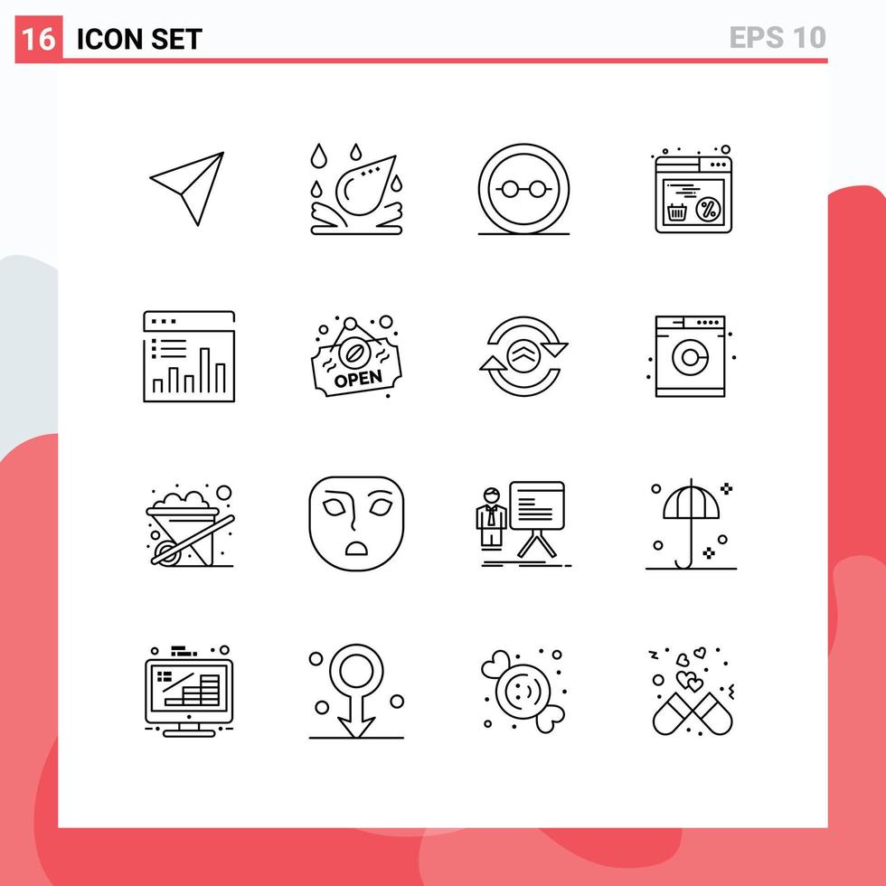 16 Universal Outline Signs Symbols of chart analysis geek web online Editable Vector Design Elements