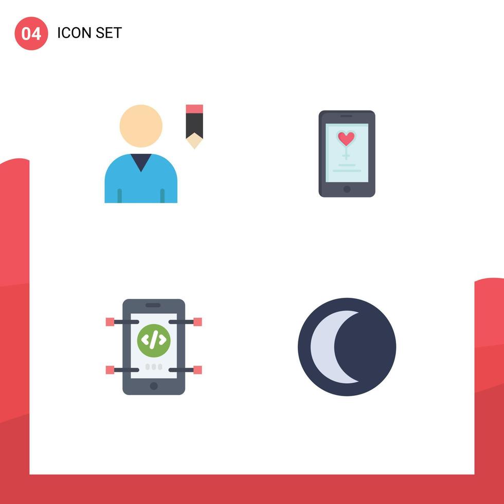 4 User Interface Flat Icon Pack of modern Signs and Symbols of edit development app lover moon Editable Vector Design Elements
