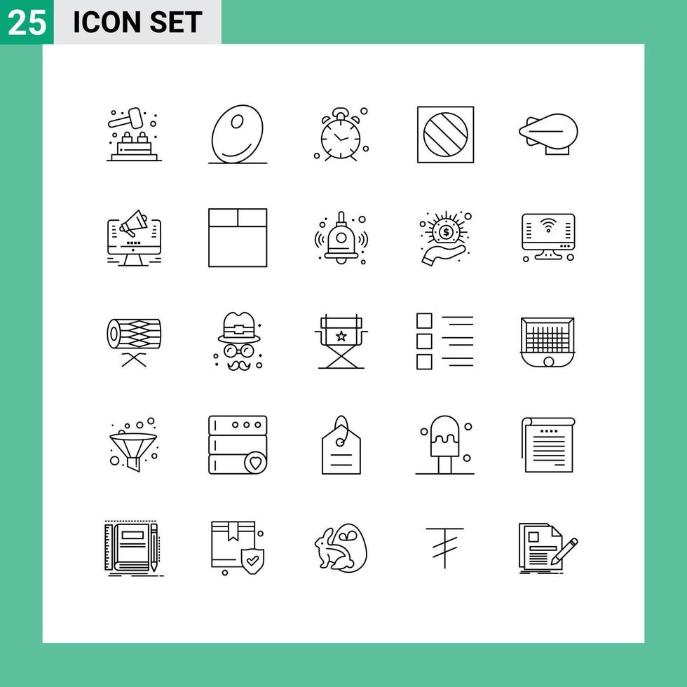 Pictogram Set of 25 Simple Lines of promotion airship clock shadow editing Editable Vector Design Elements
