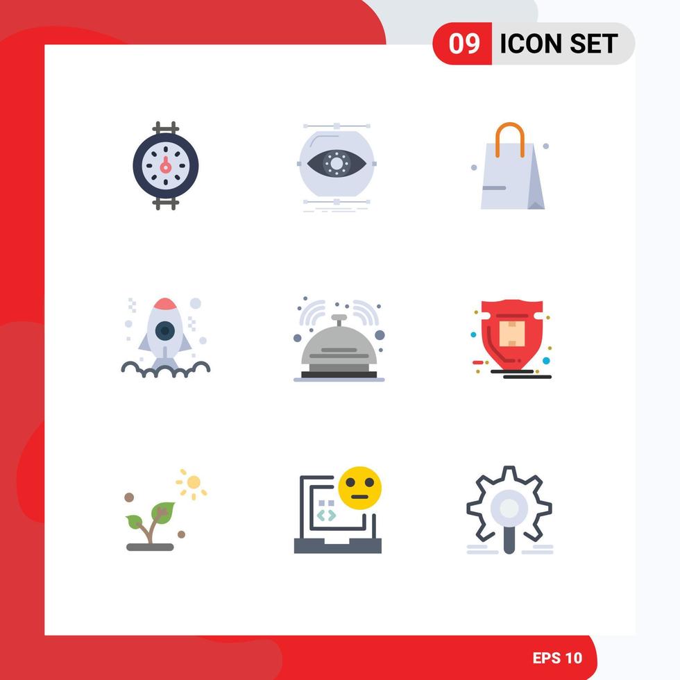 Set of 9 Modern UI Icons Symbols Signs for hotel bell handbeg launch coding Editable Vector Design Elements
