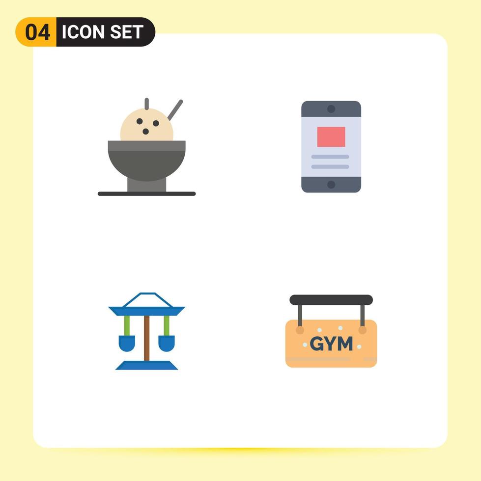 4 Universal Flat Icons Set for Web and Mobile Applications bowl balance text drum board Editable Vector Design Elements