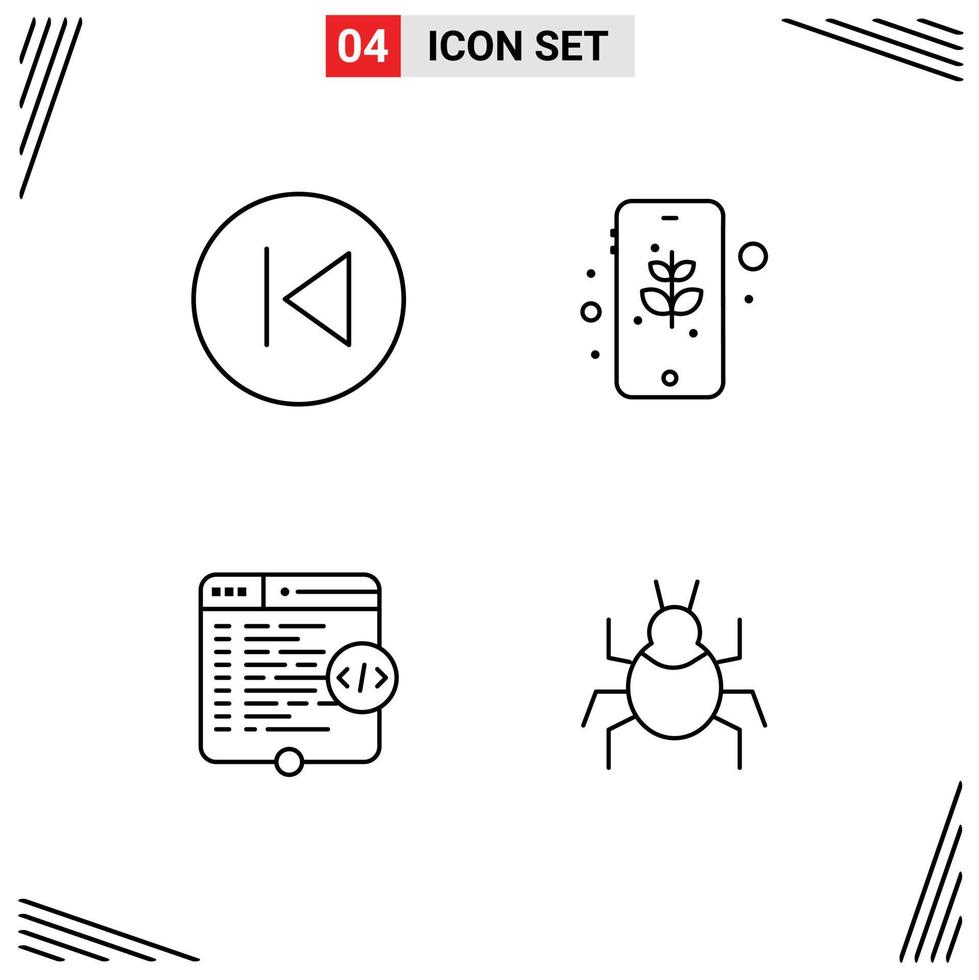 Mobile Interface Line Set of 4 Pictograms of arrow code arrows left eco website Editable Vector Design Elements