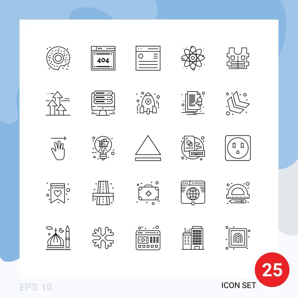 25 User Interface Line Pack of modern Signs and Symbols of safety jacket hamburger science physics Editable Vector Design Elements
