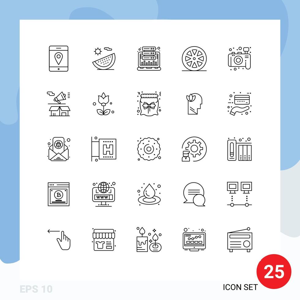 Set of 25 Vector Lines on Grid for camera healthy analysis fruit web Editable Vector Design Elements Free Vector