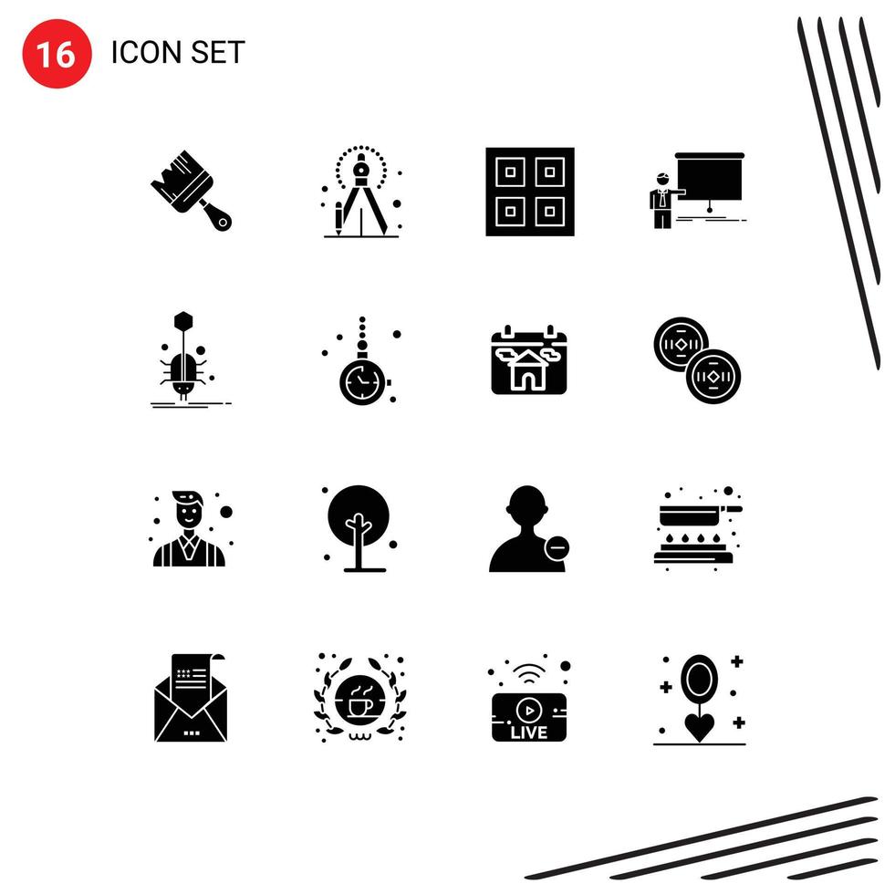 Pictogram Set of 16 Simple Solid Glyphs of bug report boxes presentation graph Editable Vector Design Elements