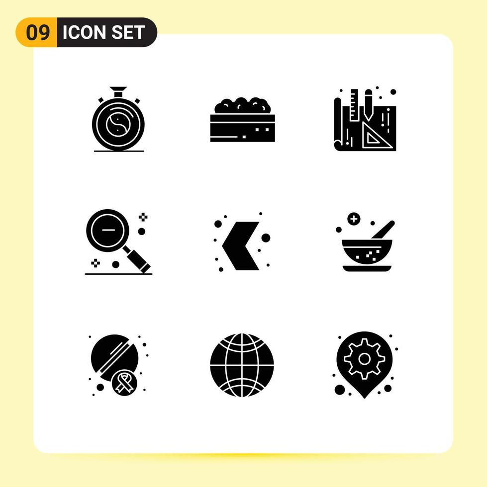 Pack of 9 Modern Solid Glyphs Signs and Symbols for Web Print Media such as left arrow blueprints ui out Editable Vector Design Elements
