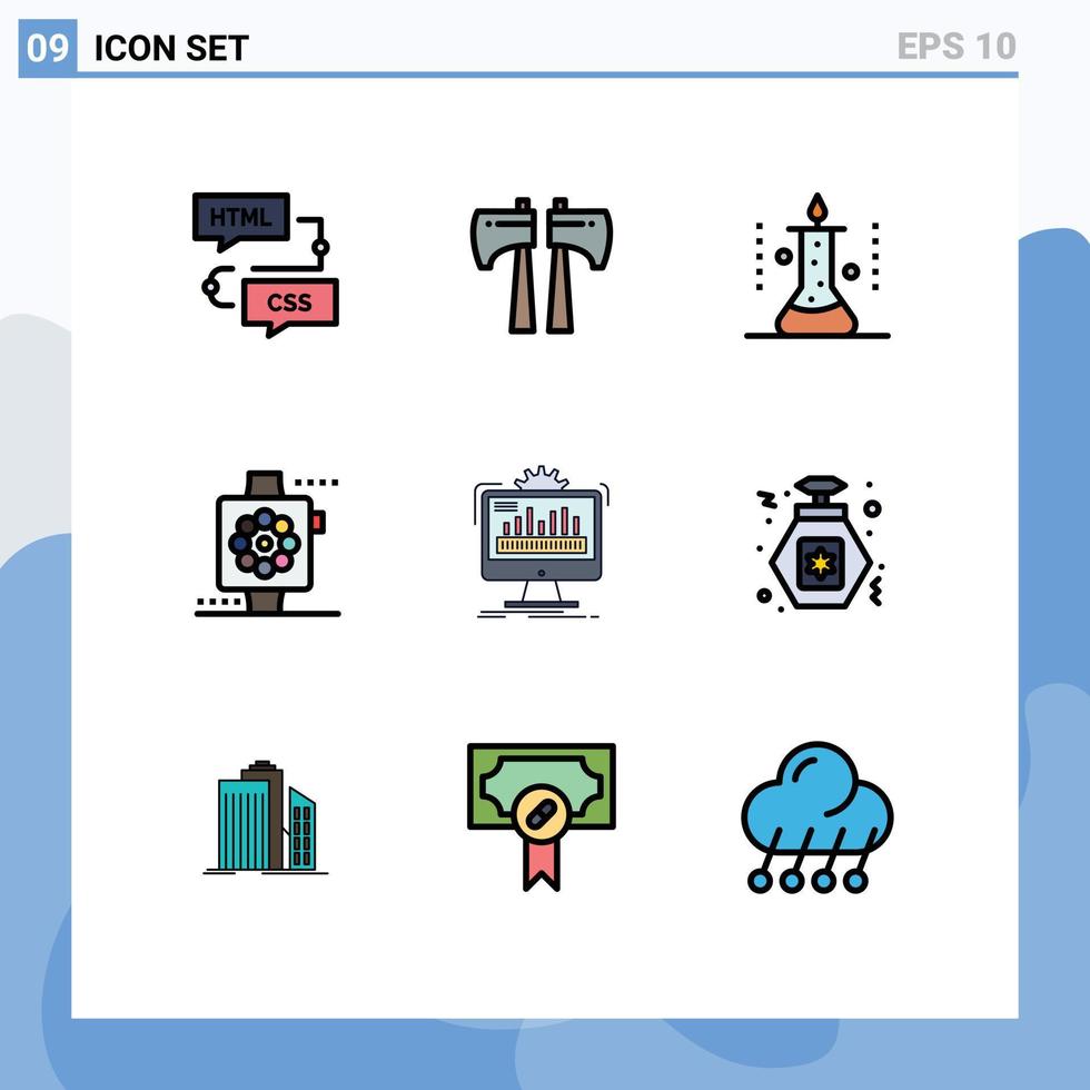 Set of 9 Modern UI Icons Symbols Signs for dashboard smart laboratory devices science lab Editable Vector Design Elements