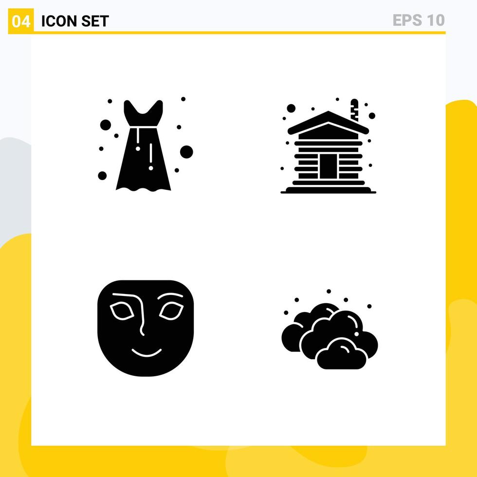4 Universal Solid Glyphs Set for Web and Mobile Applications blouse frock happy house home cloud Editable Vector Design Elements