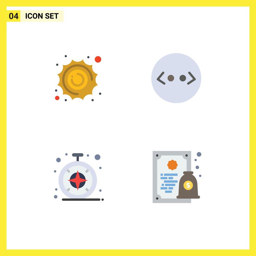 Mobile Interface Flat Icon Set of 4 Pictograms of sun safari space html diploma Editable Vector Design Elements