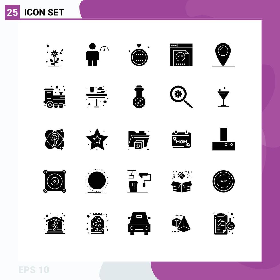 User Interface Pack of 25 Basic Solid Glyphs of holiday programming performance error ring Editable Vector Design Elements Free Vector