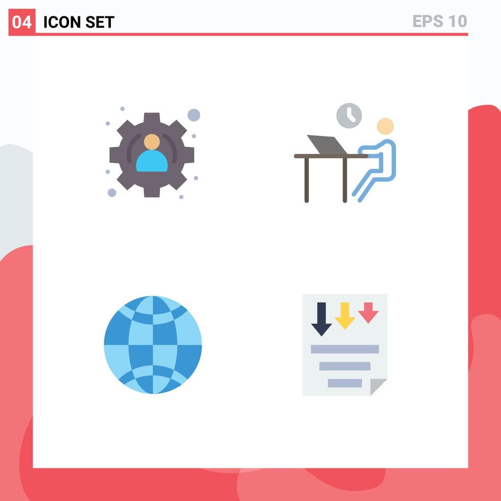 Set of 4 Vector Flat Icons on Grid for management globe desk person data Editable Vector Design Elements