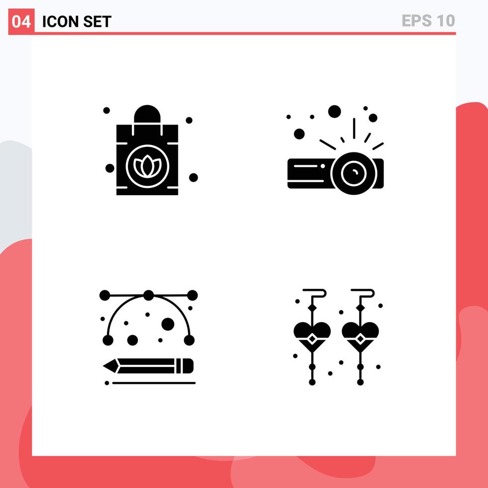 4 Universal Solid Glyphs Set for Web and Mobile Applications handbag drawing tools device design production dangling earrings Editable Vector Design Elements Free Vector