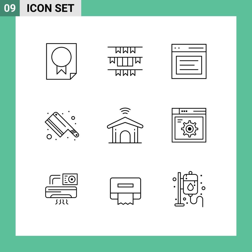 9 Universal Outlines Set for Web and Mobile Applications knife cleaver ireland user interface Editable Vector Design Elements