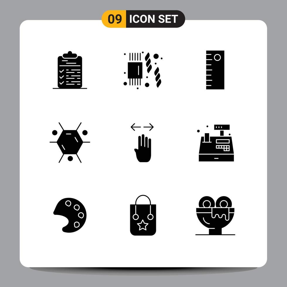 Set of 9 Vector Solid Glyphs on Grid for right finger ruler hand science Editable Vector Design Elements Free Vector and Free SVG