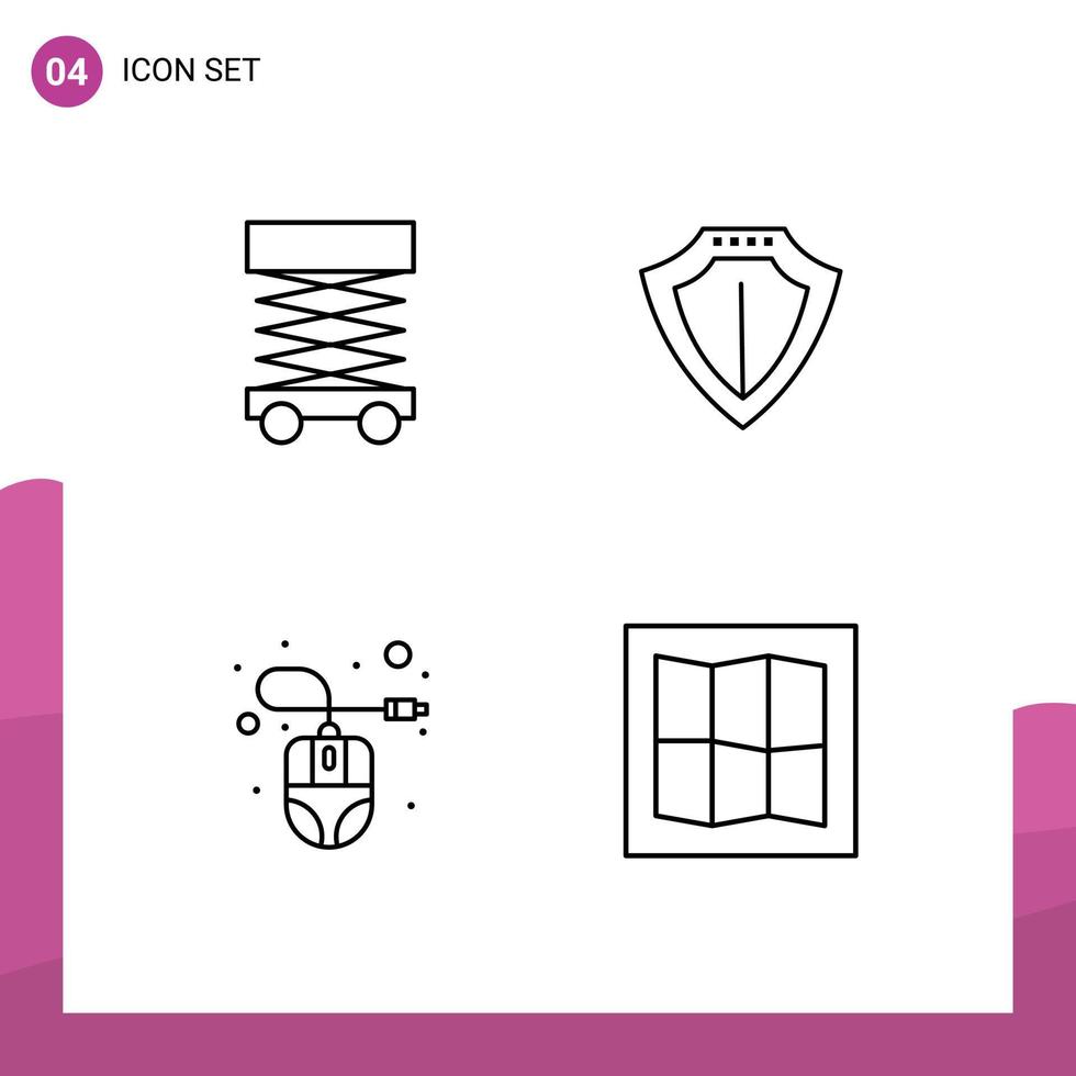 Stock Vector Icon Pack of 4 Line Signs and Symbols for construction computer mouse structure locked mouse Editable Vector Design Elements