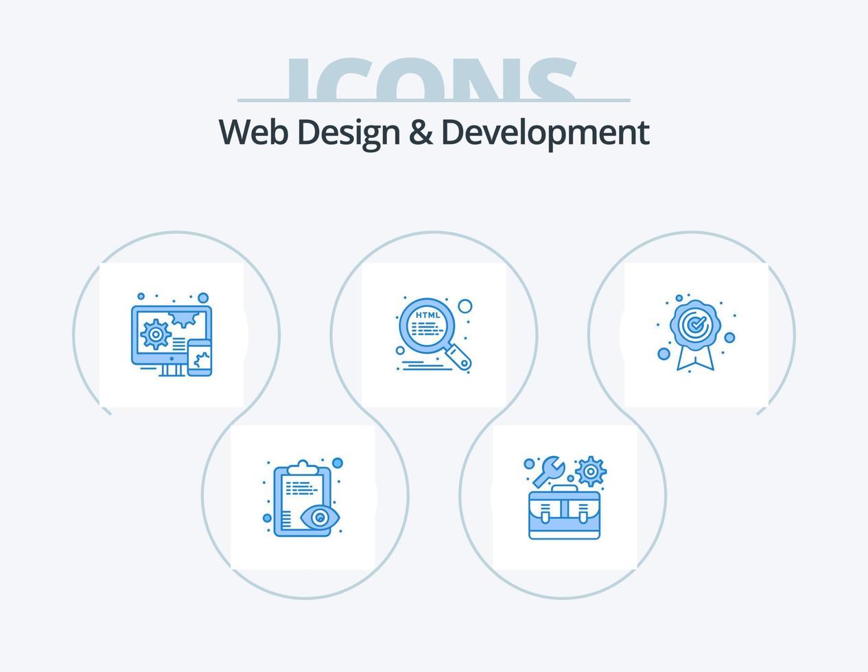 Web Design And Development Blue Icon Pack 5 Icon Design. quality. best quality. adaptive. seo. optimization Free Vector