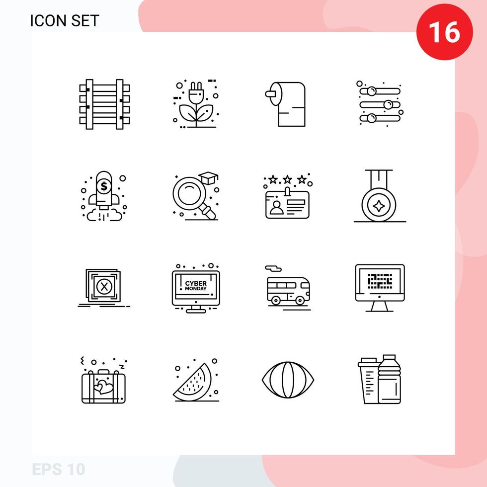 Pictogram Set of 16 Simple Outlines of analysis preference energy options configuration Editable Vector Design Elements Free Vector
