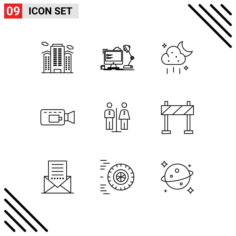 Pack of 9 Modern Outlines Signs and Symbols for Web Print Media such as elevator camera lamp cam ui Editable Vector Design Elements