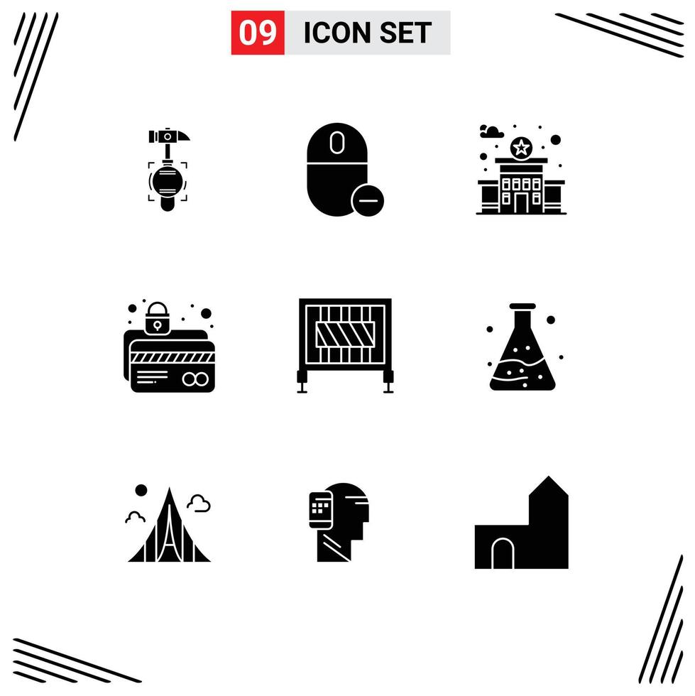 Modern Set of 9 Solid Glyphs and symbols such as barrier lock remove card security atm card Editable Vector Design Elements Free Vector