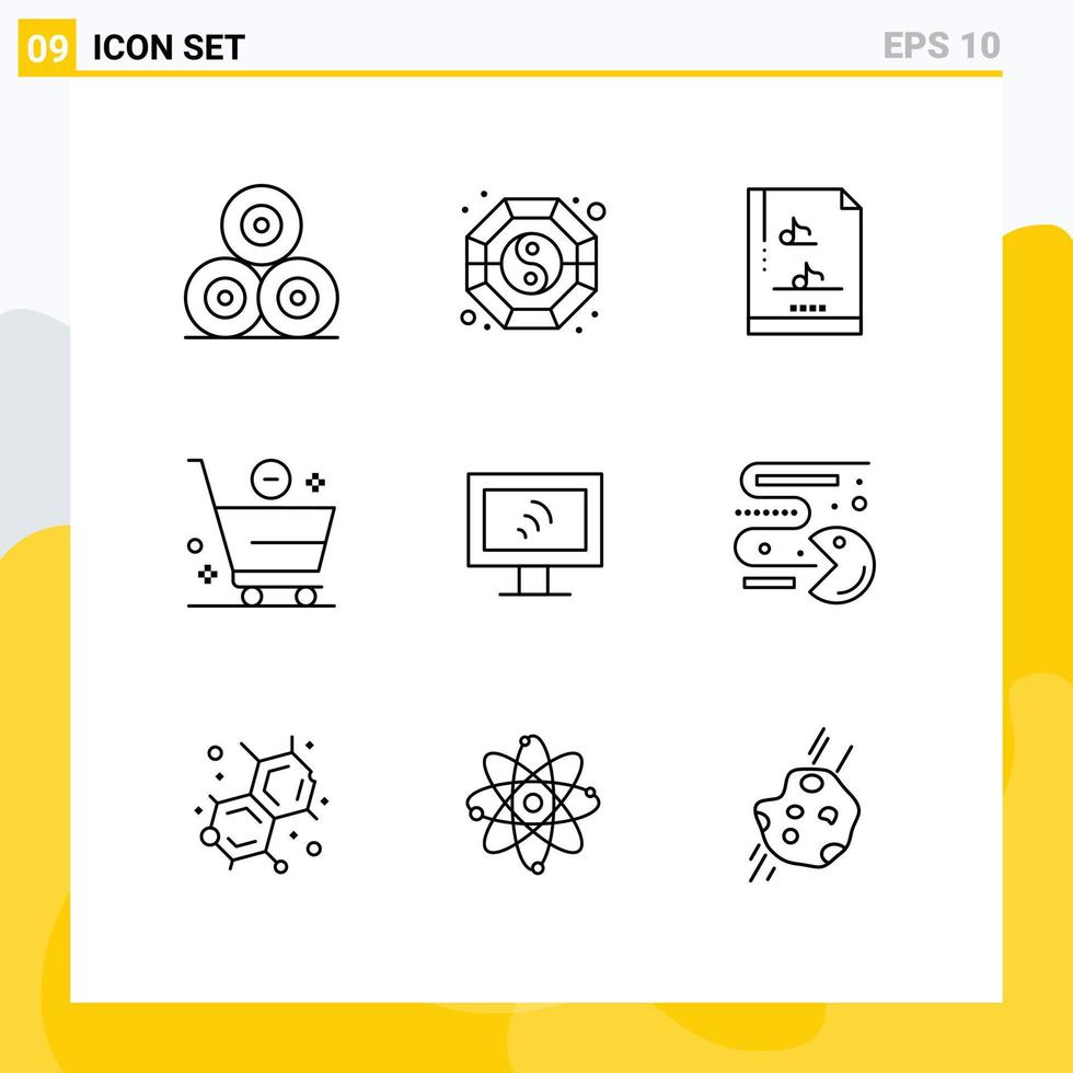 Group of 9 Outlines Signs and Symbols for service computer file document minus commerce Editable Vector Design Elements Free Vector