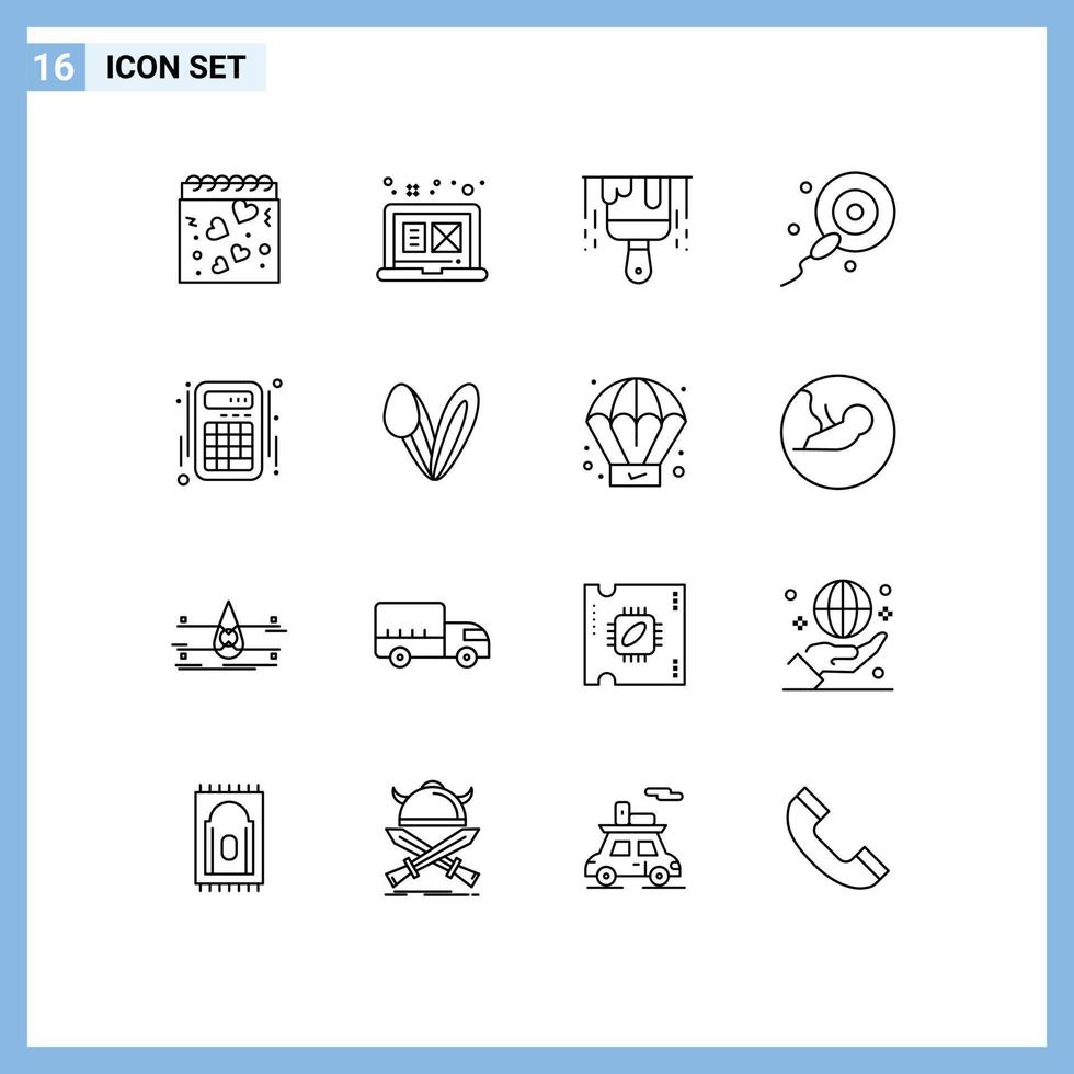 Group of 16 Outlines Signs and Symbols for accounts interaction brush calculator sperms Editable Vector Design Elements