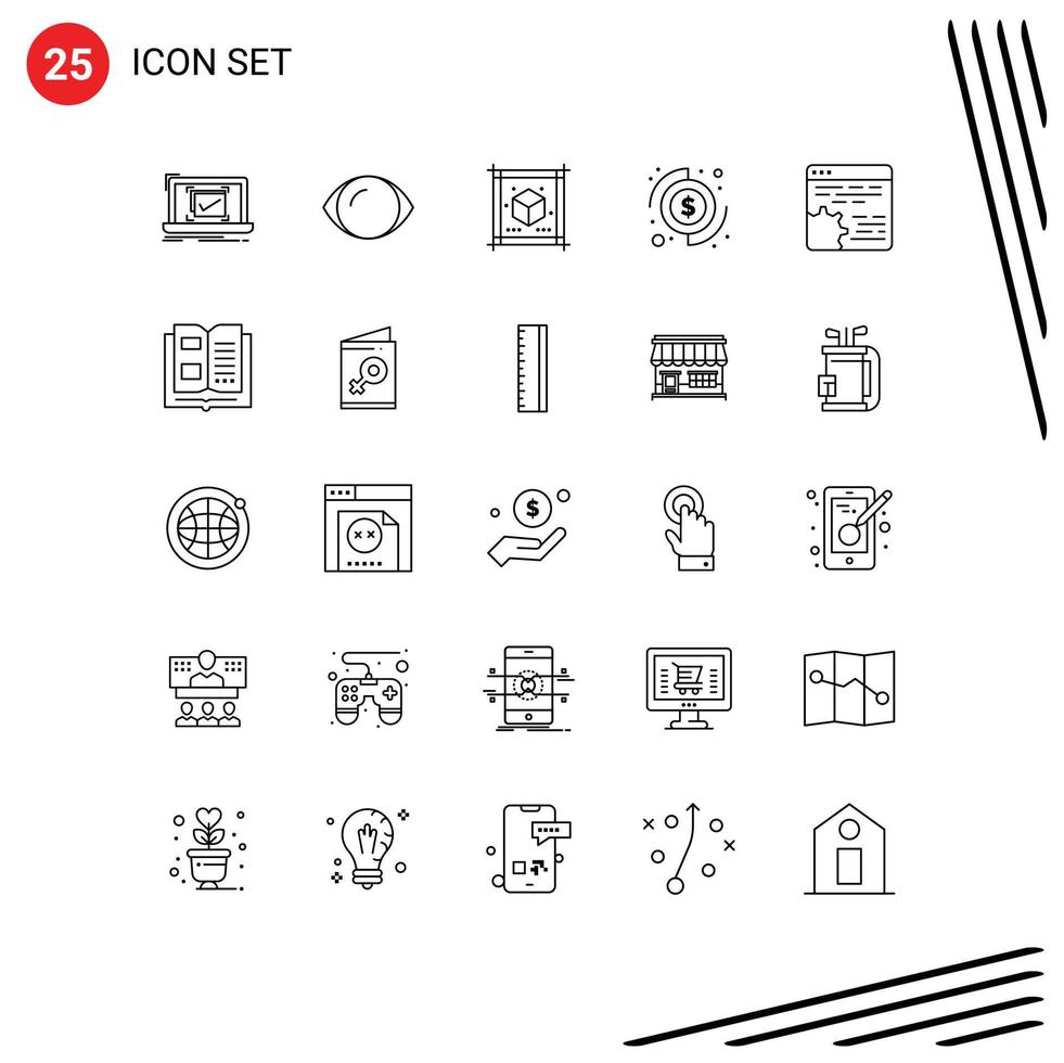 User Interface Pack of 25 Basic Lines of api investment vision coins sheet Editable Vector Design Elements