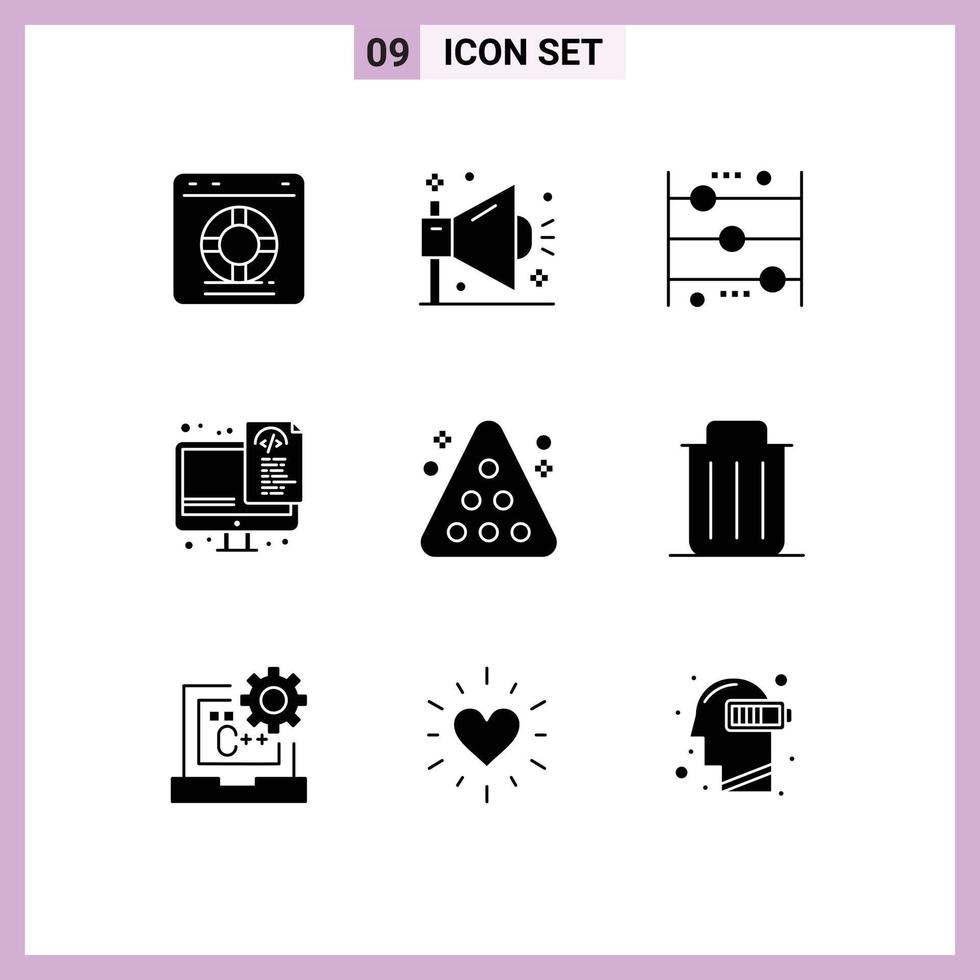Group of 9 Modern Solid Glyphs Set for programming coding seo learning calculator Editable Vector Design Elements Free Vector