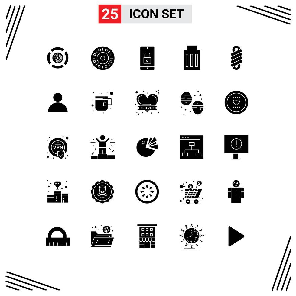 Pack of 25 Modern Solid Glyphs Signs and Symbols for Web Print Media such as spring user lock trash delete Editable Vector Design Elements